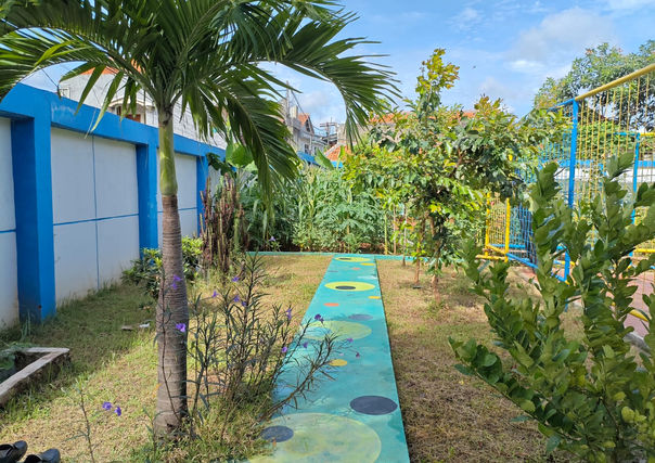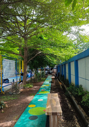 Taman ini menjadi tempat yang asri untuk duduk dan melihat kegiatan yang berlangsung di lapangan
